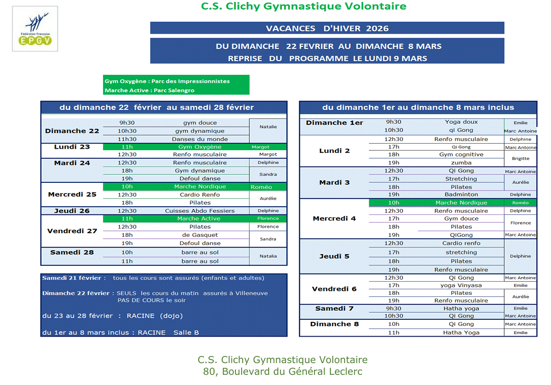 Tous nos cours sont assurés hors vacances scolaires. (voir dates vacances scolaires)